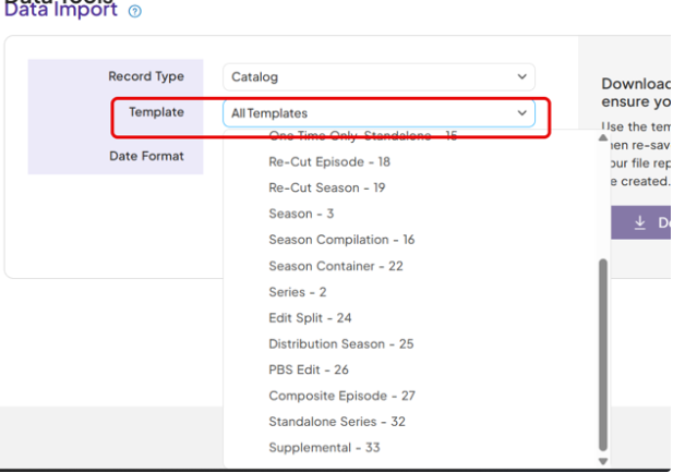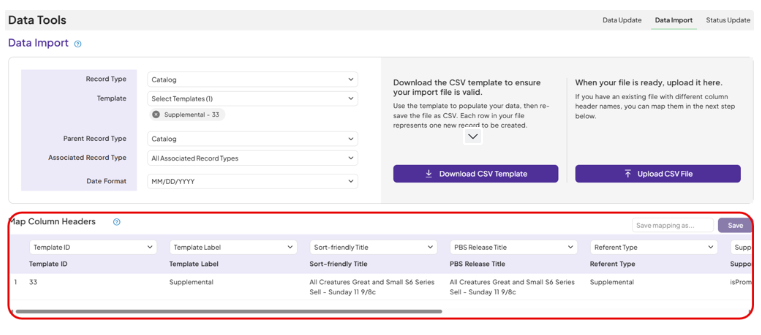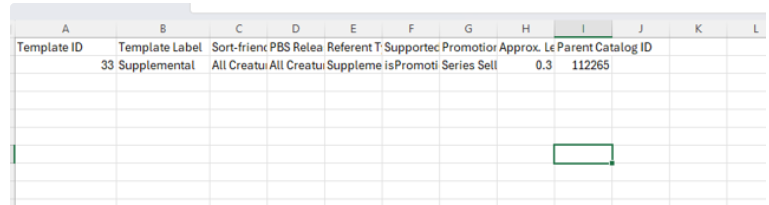 | 9 | Fill out the columns, making sure required fields are filled out. Only keep the columns with data field name that are being filled out. Use the following list for Template ID and Label Template ID = Template ID Template Label = Template Name