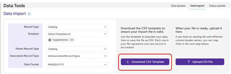 | 7 | Click 'Download CSV Template' button.![]() | ||