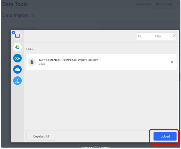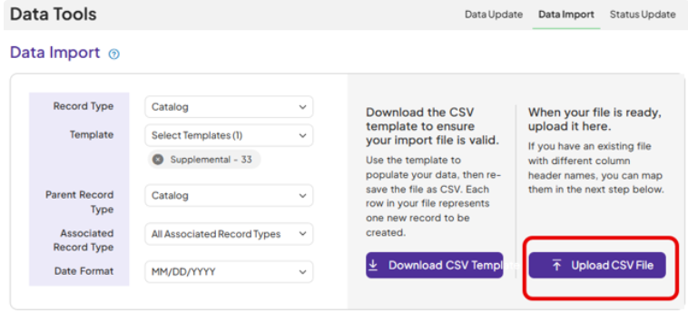 | 11 | Click on 'Upload CSV File' on the Data Update screen.![]() | ||